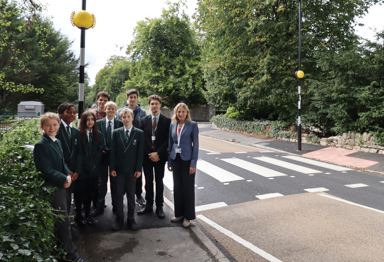 Children from Ralph Allen School joined deputy head teacher Seb Witts and Cabinet Member for Sustainable Transport Delivery Lucy Hodge at the recently completed crossing outside of the school. Work has also been completed on a new crossing at Frome Road.